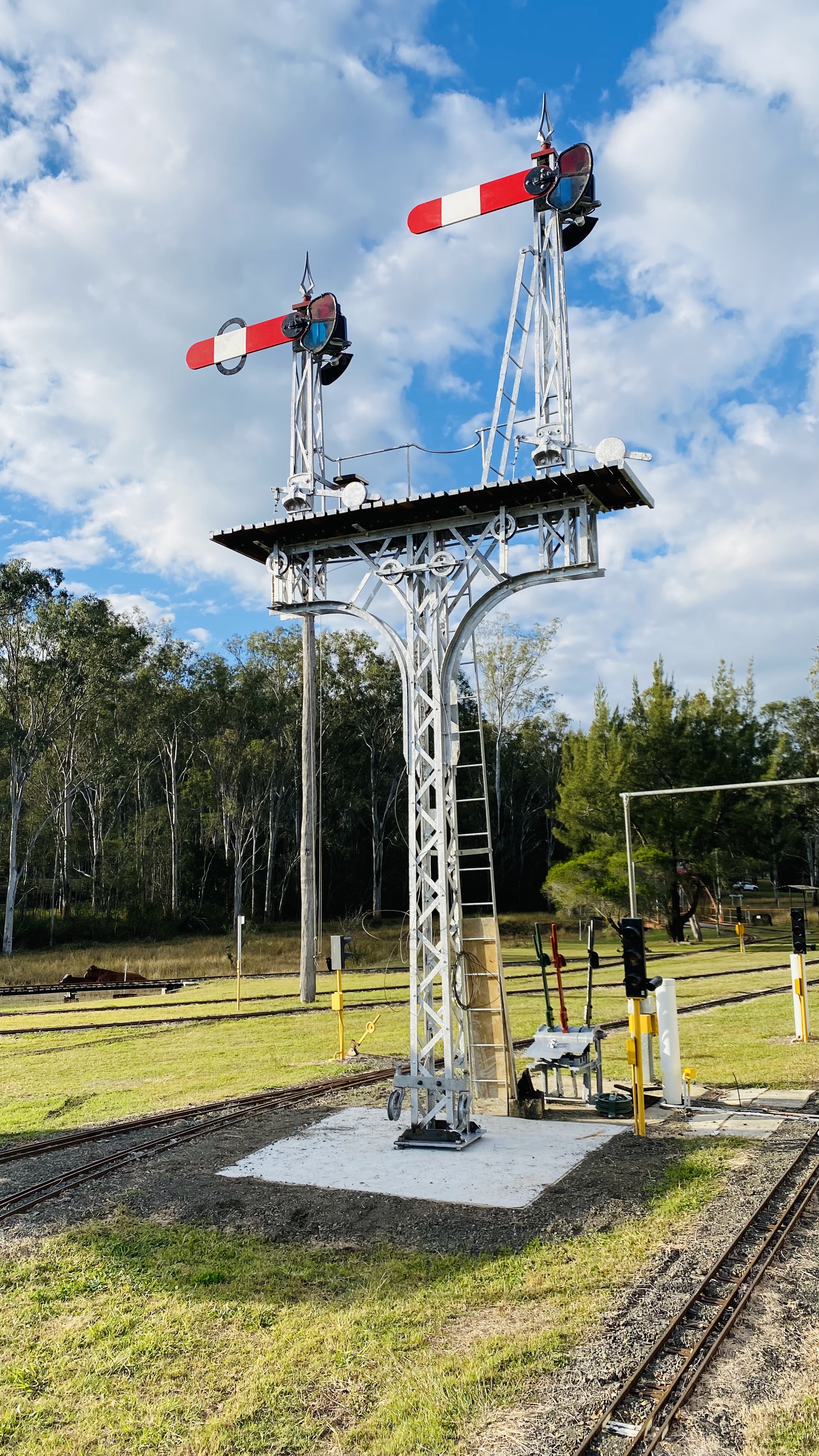 Some 35 years ago, the historic mainline signal on Grandchester’s west side was taken down by Queensland Rail. This was the down signal for trains coming from Toowoomba, a double semaphore signal gantry. One of our members rescued the gantry, which may have otherwise been scrapped. Over the past year, this signal gantry has been diligently restored, and is now fully functional again. We are happy and proud to have this beautiful piece of history ready for our 25th anniversary.